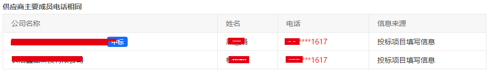 l 投标供应商信息异常:历史投标项目中若多家供应商所填写的主要成员信息一致,则识别为异常。