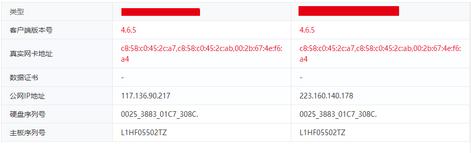 3. IP地址、客户端版本号不能作为一台电脑的唯一标识,只是作为辅助信息透出。