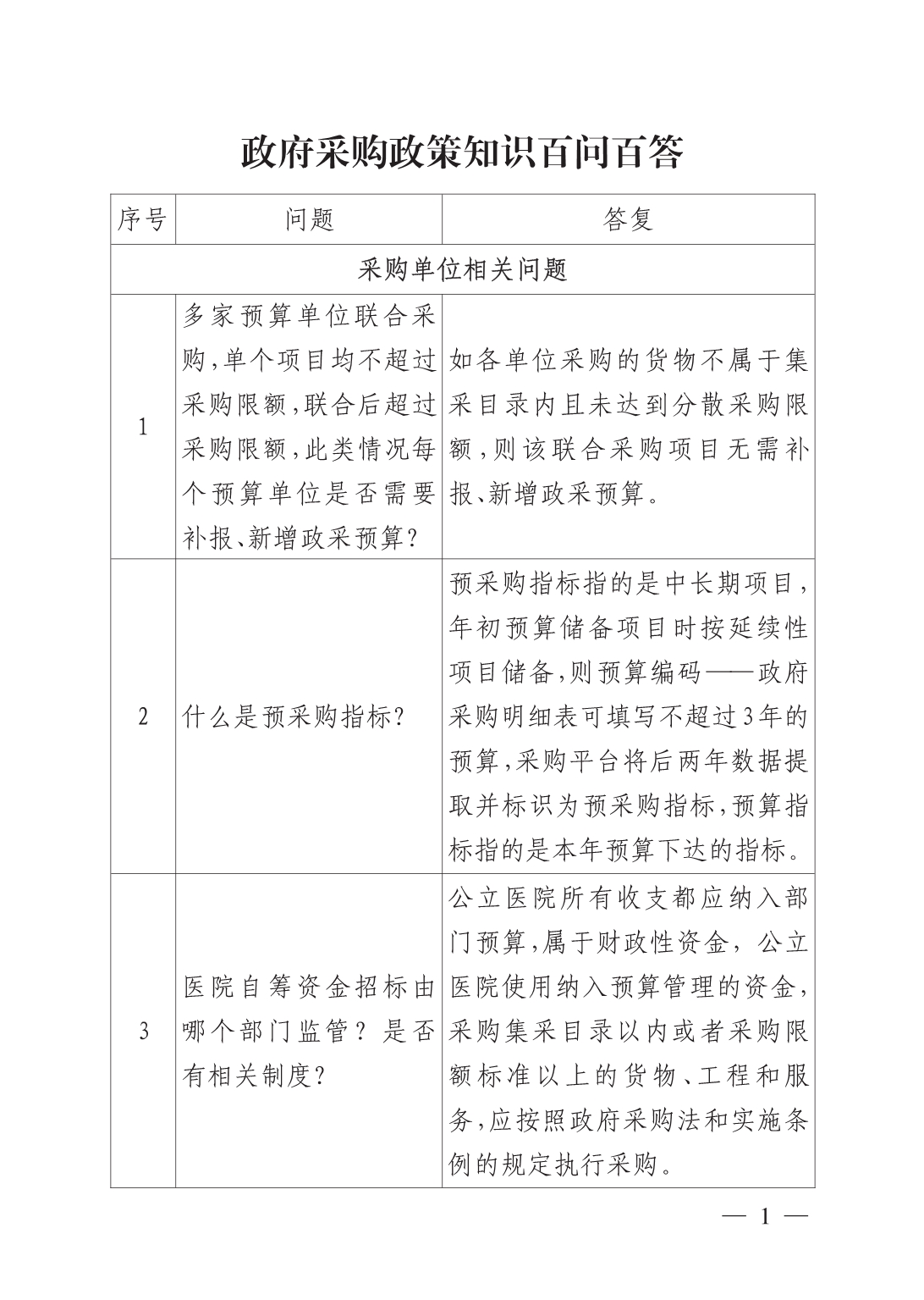 《政府采购政策知识百问百答》第一期
