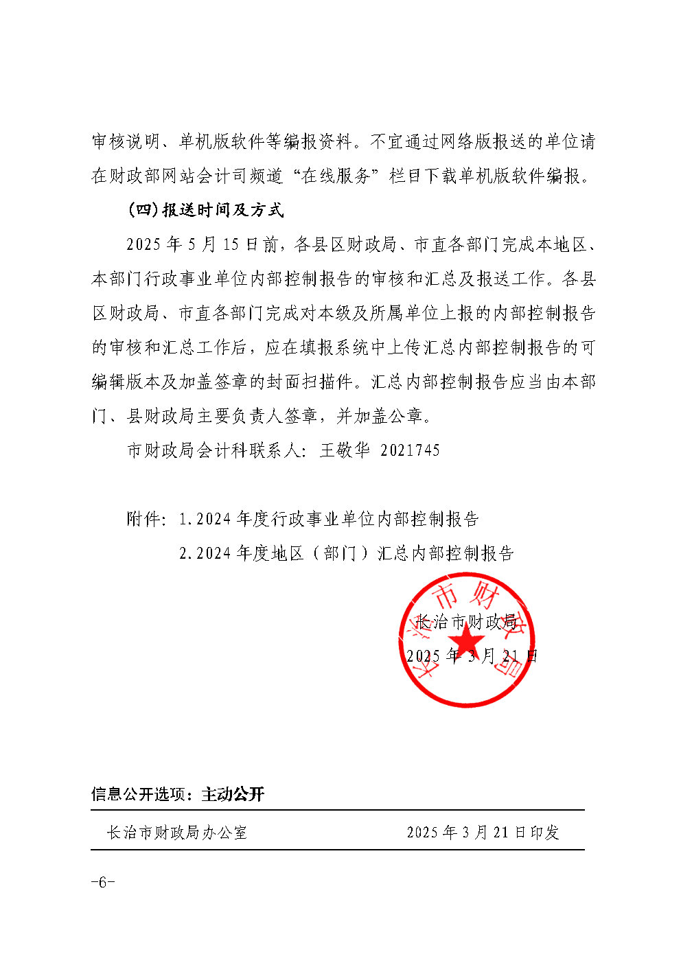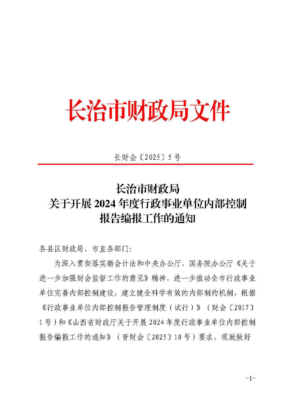 长治市财政局关于开展2024年度行政事业单位内部控制报告编报工作的通知 | 长财会〔2025〕5 号